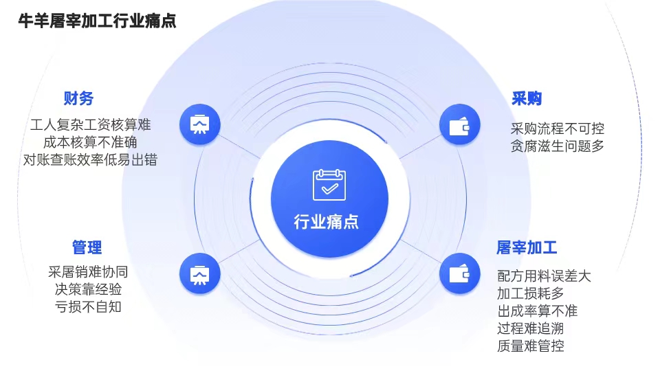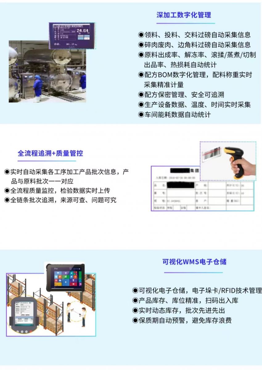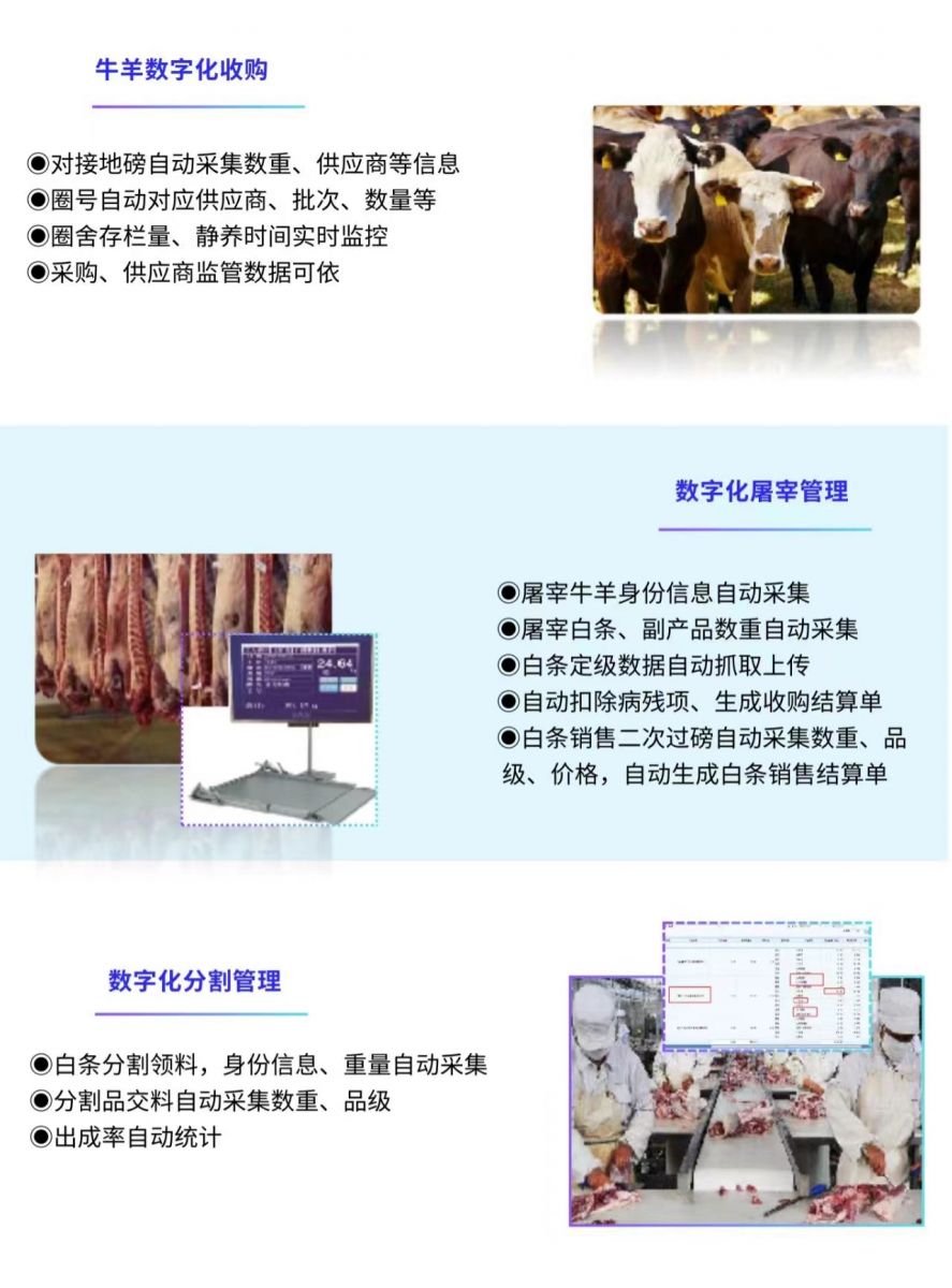 通過云存儲、物聯網、工業互聯網等技術,對牛羊采購、屠宰分割、深加工、倉儲配送所有環節進行信息化升級。全流程全鏈路一站式實時管控,可實現數據共享跨部門協作,幫助企業實現精益生產,有效降本增效,實現收益最大化!
